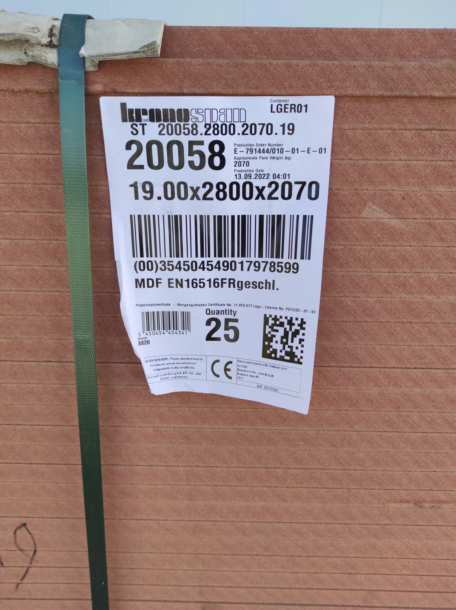 EN 316, EN 622,-5 – type MDF; EN 13501-1: class B-s1, d0